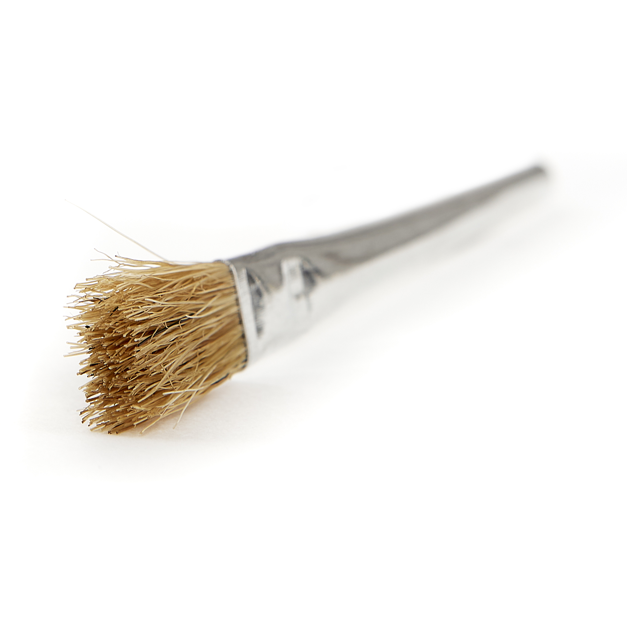 Solder liquid brush with natural bristles, ca. 10 mm wide, with metal shaft.