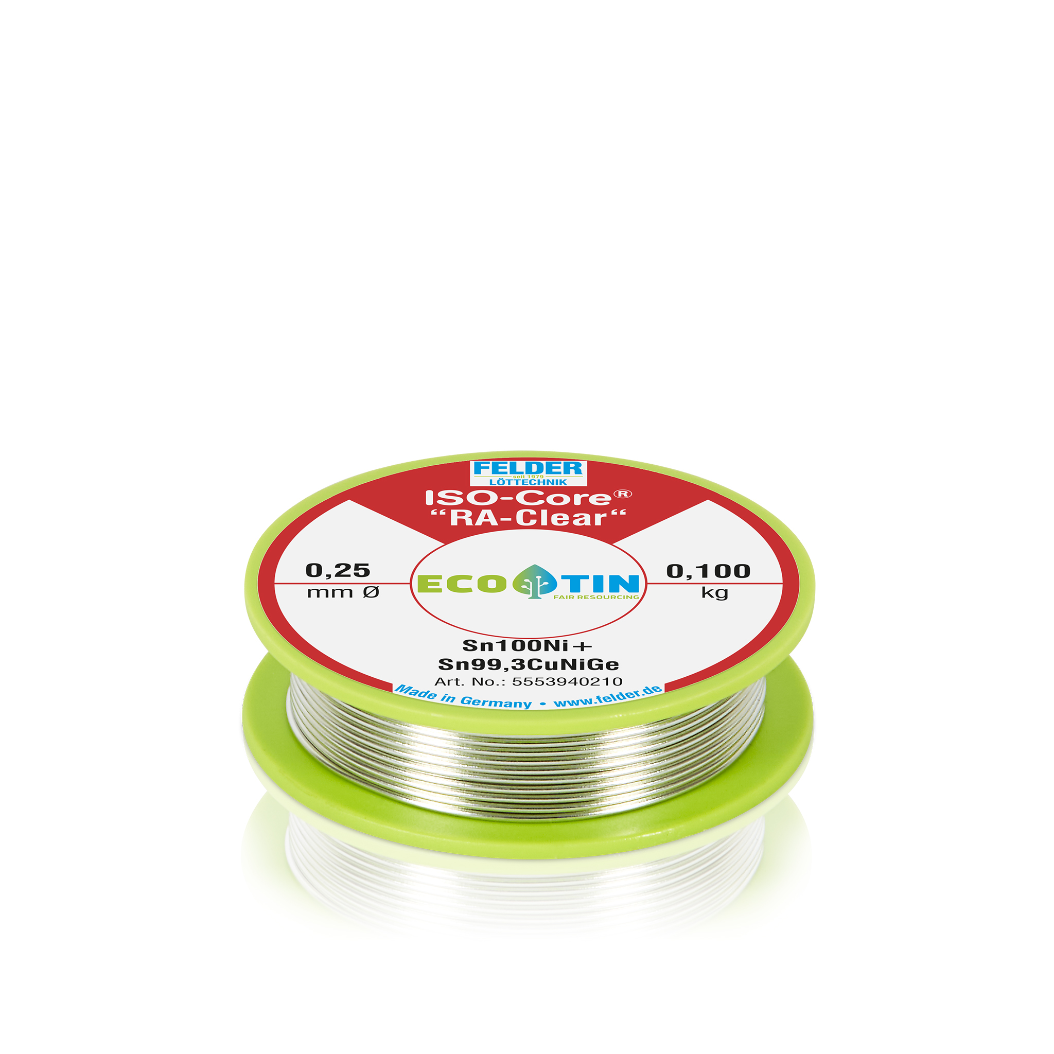ISO-Core® „RA-Clear“ ist die halogenidaktivierte Variante des FELDER ISO Core® „Clear“ Lötdrahtes, ein bleifreier Lötdraht für Hand- und Automatenlötungen für anspruchsvollere Lötaufgaben in der Elektrotechnik, Elektromechanik und Elektronik. Die neue Flussmittelrezeptur „RA-Clear“ hat die Typisierung REM1 und ist auf Basis synthetischer Harze und modifizierter natürlicher Harze (ohne Kolophonium) aufgebaut. Die Rückstände sind nicht korrosiv und weisen einen SIR-Wert >100 MΩ auf.